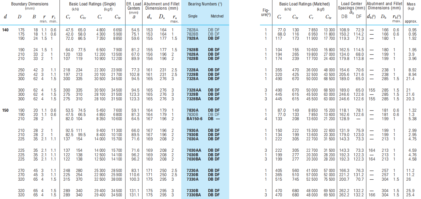 Cross-sections of double-row angular contact ball bearings are shown below. The