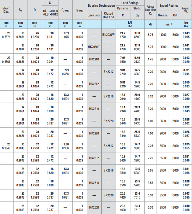 | Open Ends | Closed One End | C | C0 | Grease | Oil | ||||||||
