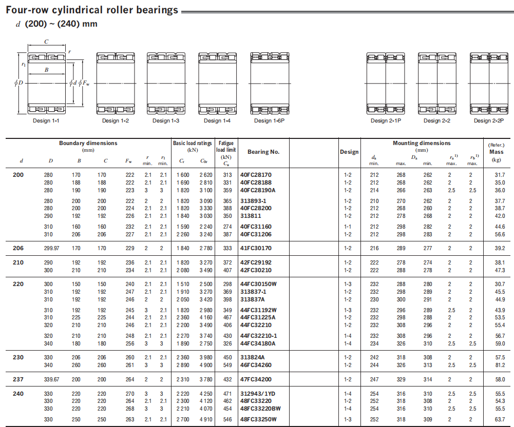 Double-row cylindrical roller bearings come in two types : with a cylindrical bore, and with a tapered bore. As for those with a tapered bore, the specified amount of clearance can be