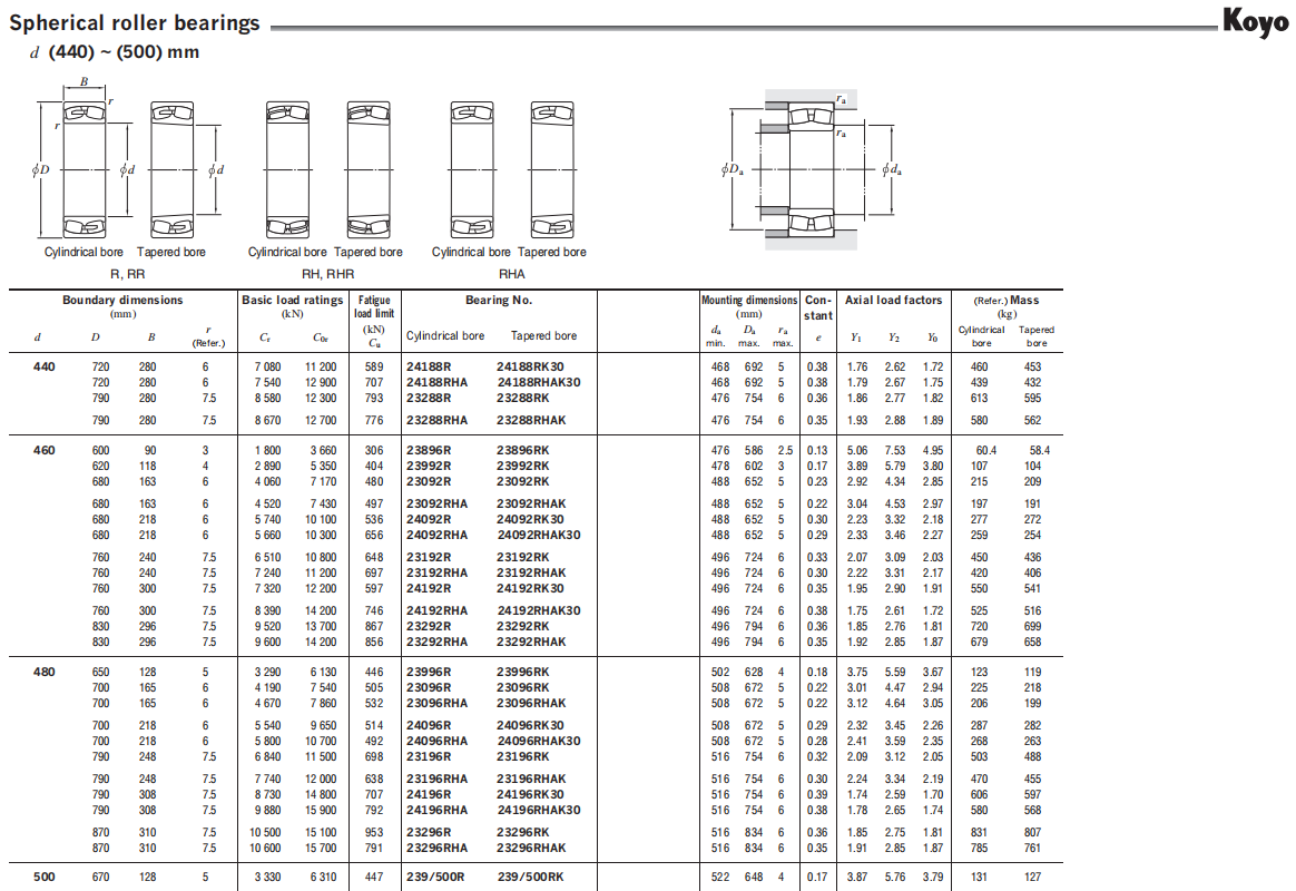 KOYO Spherical roller bearings feature a large load rating capacity. This type of bearing is suitable for low- or medium-speed applications which involve heavy or impact loading.