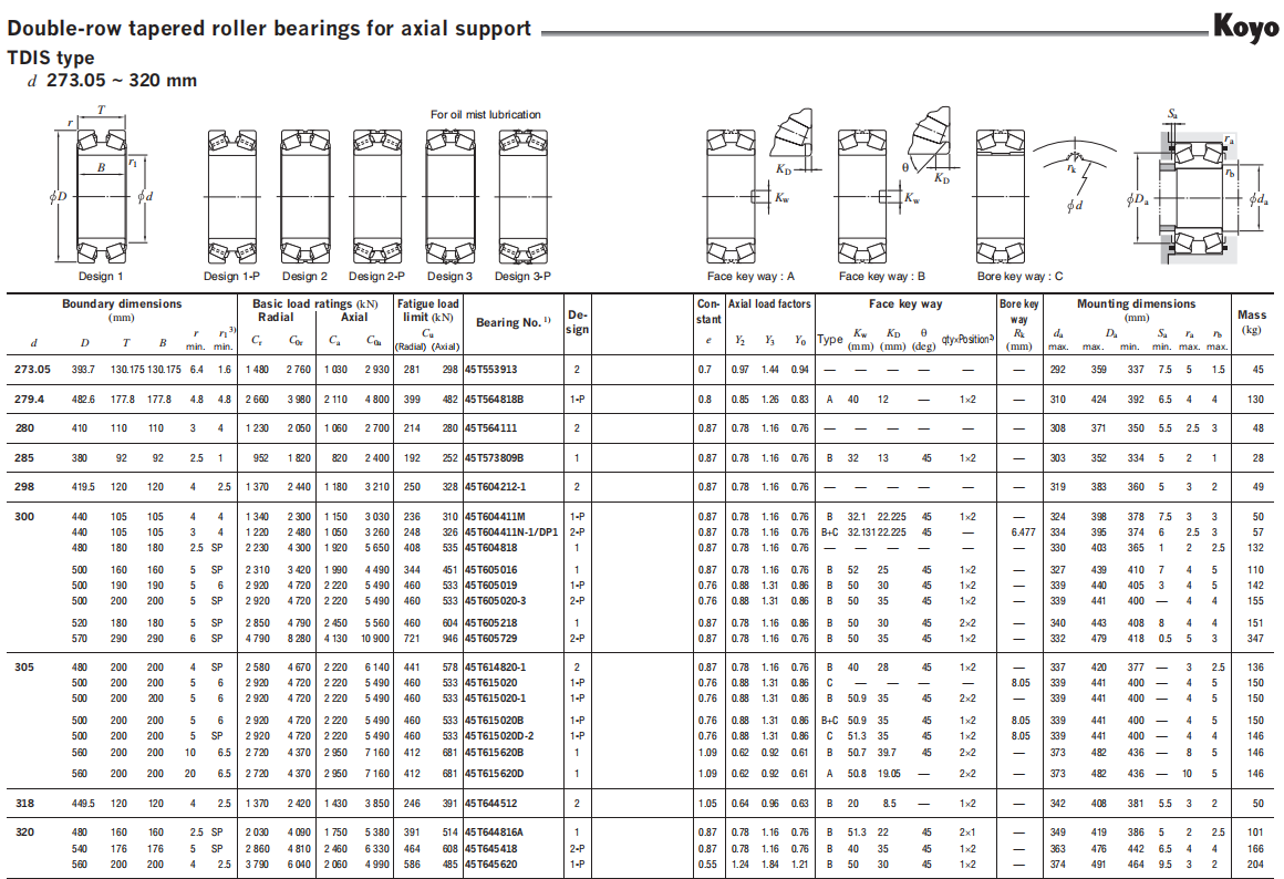 KOYO  Single-row tapered roller bearings, Able to carry radial and axial load in one direction simultaneously. Combined radial and axial load can be also accommodated. Suitable for heavy load and impact load. The larger the contact angle (α) is, the greater the bearing resistance to axial load.