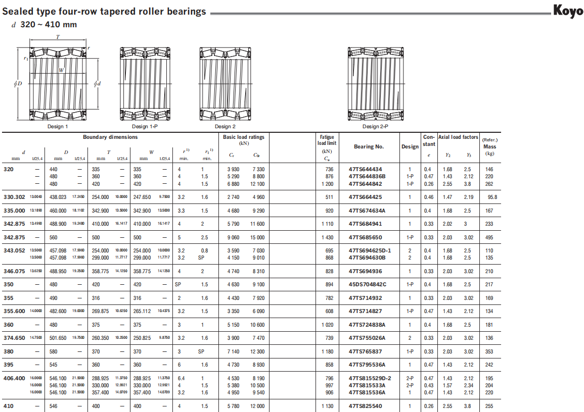Koyo tapered roller bearings whose bearing numbers are suffixed by “J” are precision ground in accordance with the ISO 355 (Sub-unit, Metric Series) specifying