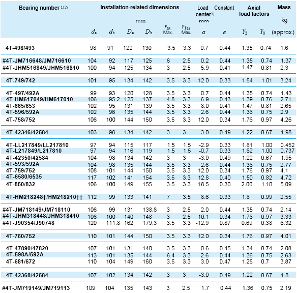 Bearing number 1) Installation-related dimensions Mass