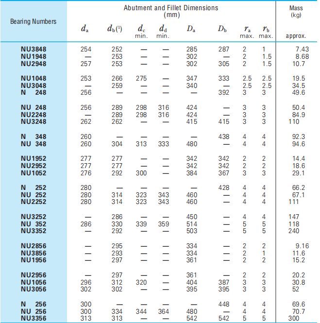 Bearing Numbers  Abutment and Fillet Dimensions