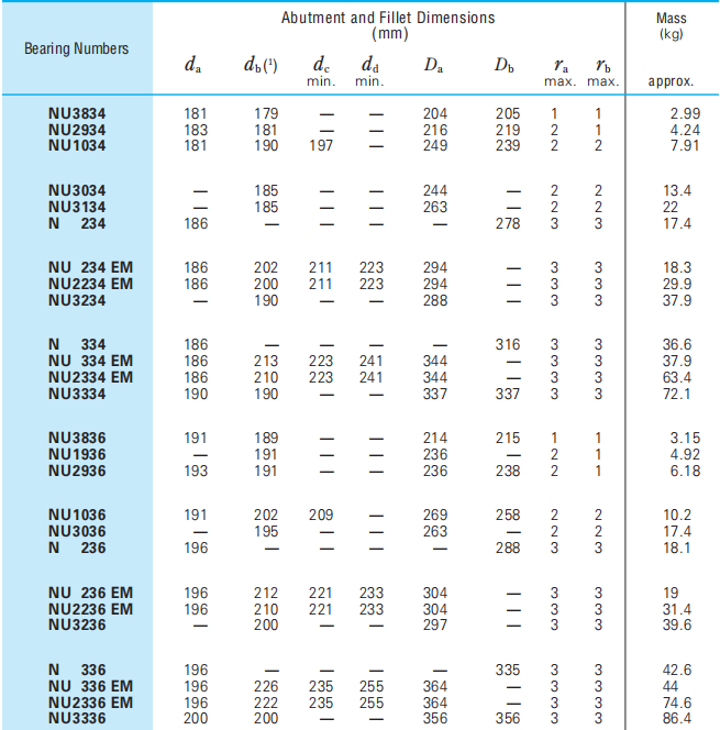 Bearing Numbers Abutment and Fillet Dimensions  Mass