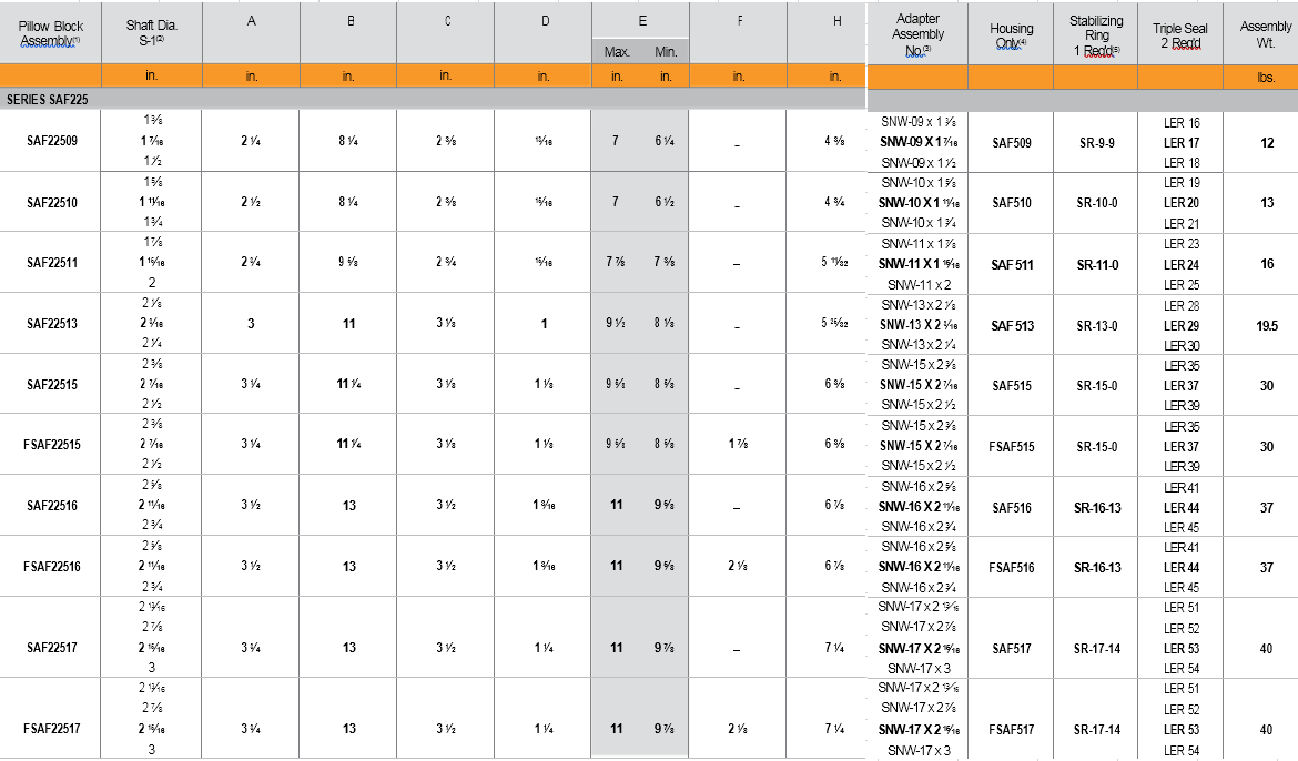 FSAF22517 22217K SNW-17 X 2 15⁄16 FSAF517 SR-17-14 LER 52 40