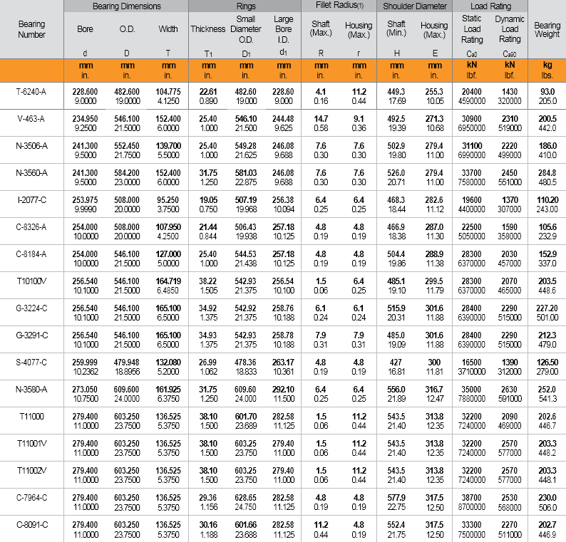 • Bearing of choice for axial positions in a wide variety of applications including oil well swivels, pulp refiners, extruders and piercing mill thrust blocks.