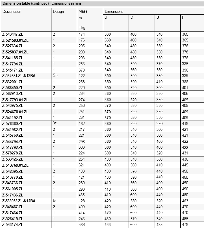 ■ Non-standardised bearings (Z-5..ZL) with normal accuracy