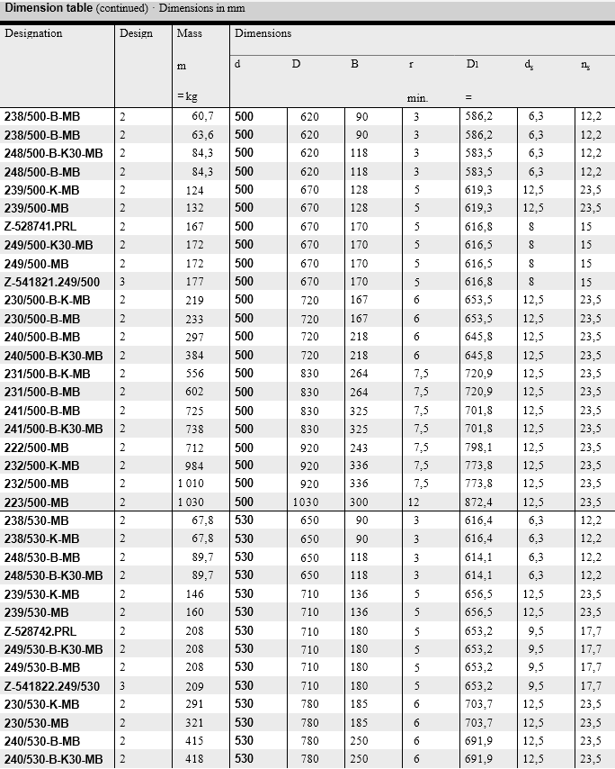 The inner rings have cylindrical or tapered bores. The symmetrical barrel rollers orient themselves freely on the concave outer ring raceway. As a result, shaft flexing and misalignment of the bearing seats are compensated, see section Compensation of angular misalignments.