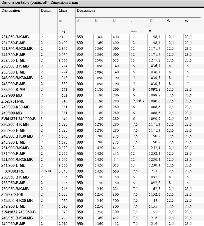 The inner rings have cylindrical or tapered bores. The symmetrical barrel rollers orient themselves freely on the concave outer ring raceway. As a result, shaft flexing and misalignment of the bearing seats are compensated, see section Compensation of angular misalignments.
