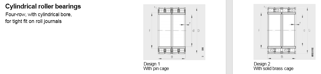 The bearings are suitable for very high radial loads and high speeds and are used principally in rolling mills and roller presses.