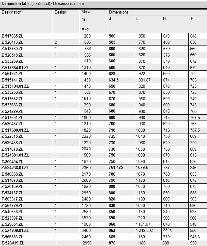 FAG Four-row cylindrical roller bearings comprise solid bearing rings and cylindrical roller and cage assemblies with solid cages.